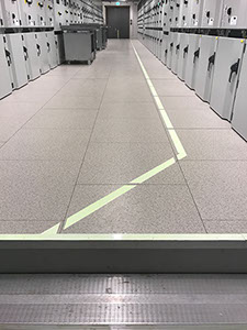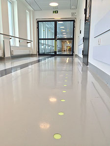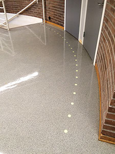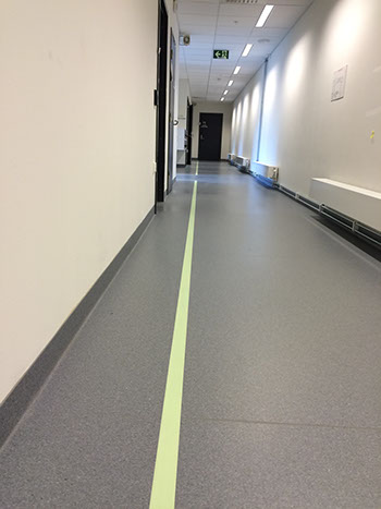 Høykvalitetslinjer og punkter med etterlysende epoxymaling med meget gode etterlysende egenskaper. Kan males nedfrest i gulvbelegg eller males oppå belegg (ca 0,7mm tykkelse)