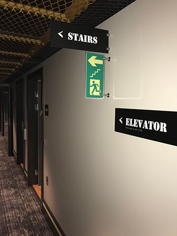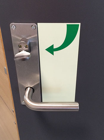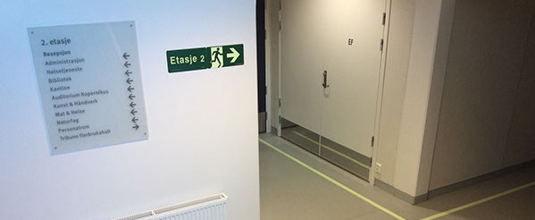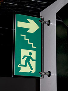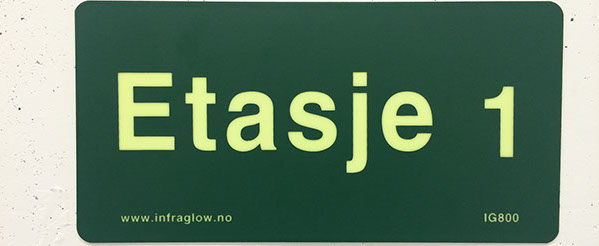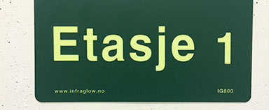 Høykvalitetsskilt i aluminium eller klart vinylglass med meget gode etterlysende egenskaper, antistatisk behandlet overflate som gjør det enkelt å holde rent. Skiltet kan fås i forskjellige størrelser. Skiltet er beregnet for bruk innendørs og i områder med svak naturlig eller kunstig belysning. De kan monteres i tak, på vegg og som flagg- eller plogskilt ut fra vegg.