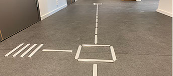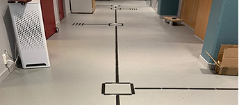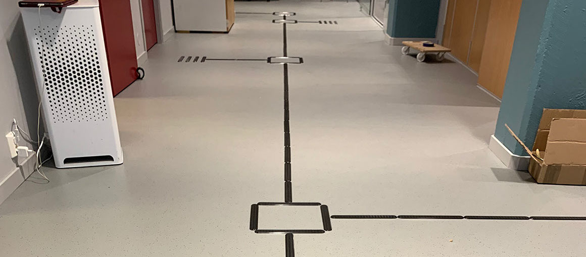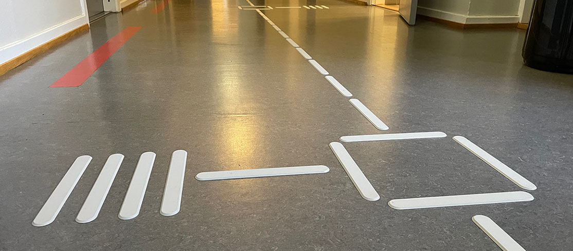 Store rom, der sentrale ganglinjer går på tvers av åpne arealer, skal ha definert gangsone eller nødvendig ledelinje. Ledelinjen skal lede til knutepunkter som resepsjon, informasjonstavler, heiser og trapper og skal være i kontrast til underlaget
